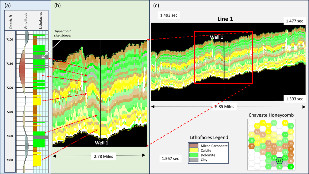 3. Enhanced interpretability: Each seismic sample is categorized with the most probable lithofacies and their associated probability.